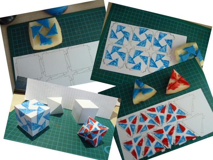 some of the younger, and some of the older, testers who tried the models also enjoyed decorating the faces. This update looks at experiments with potato printing and simple symmetry.