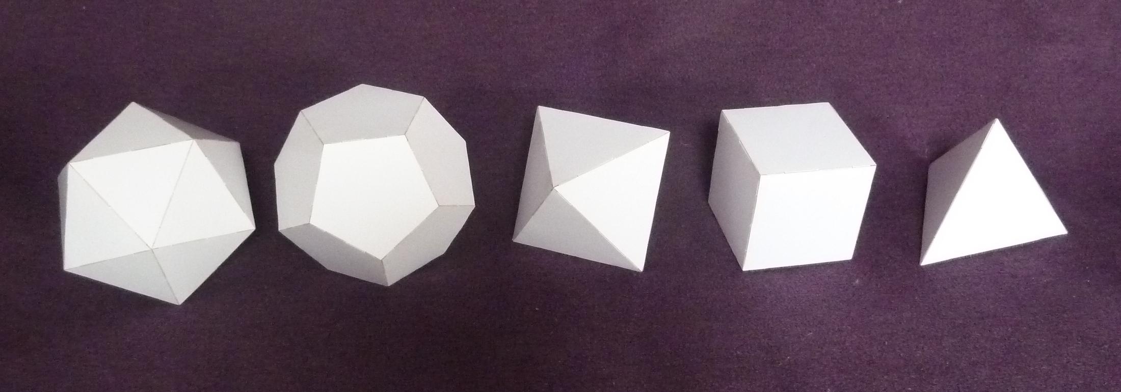 Platonic 50mm circumradius set, face and edge models